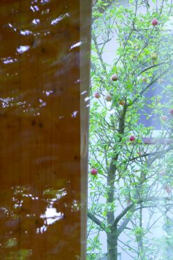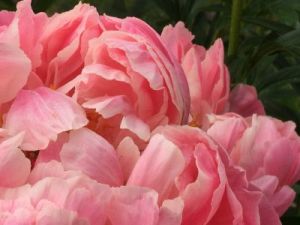 ... und gleichzeitig, wie die beiden Schalen in Balance, zurückhaltend, unspektakulär, einfach nur da: das schwarzgoldene Purpurrot und das RosaGelb und das federgerupfte Dunkelrosa der Pfingstrosen, als gäbe es keinen Abend und keinen Morgen, als stünde die Zeit still, als sei sie einfach nur da ...